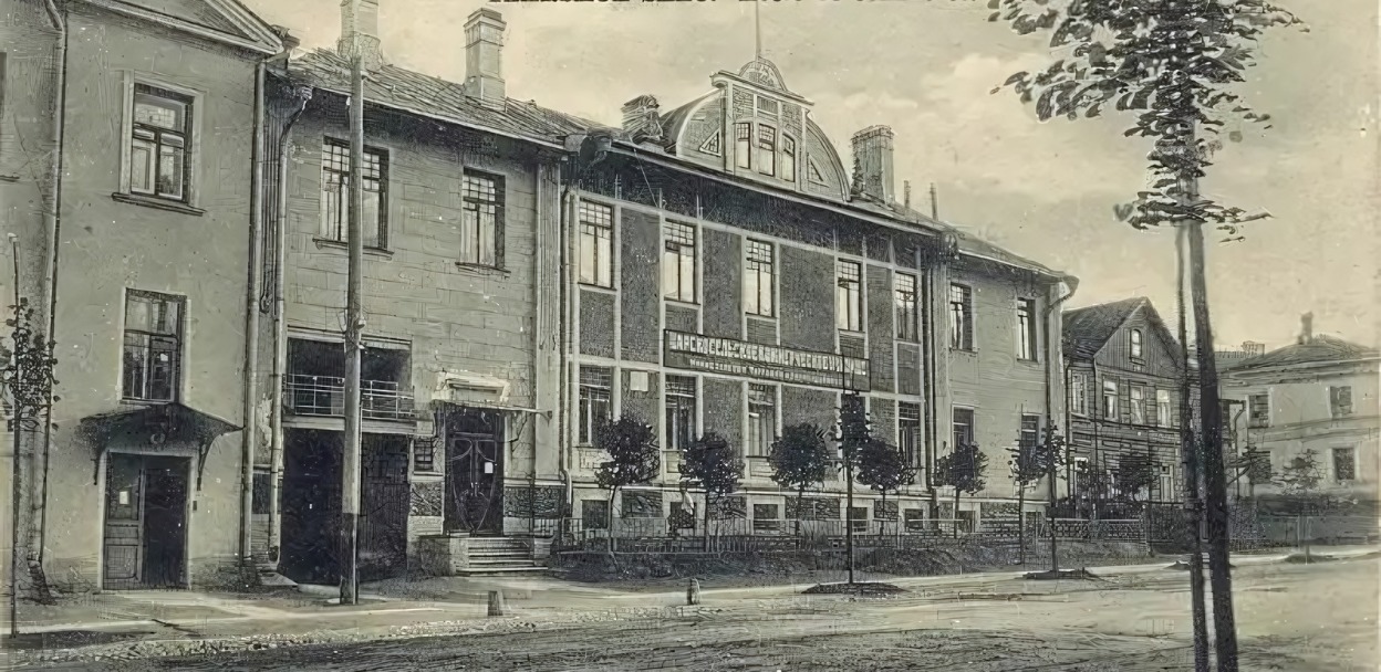 *Обложка для анонса: "Царское Село. Коммерческое училище. Училище открыто в 1912 г. на Магазейной улице д.5 (дореволюционная нумерация)". Неизвестный автор.